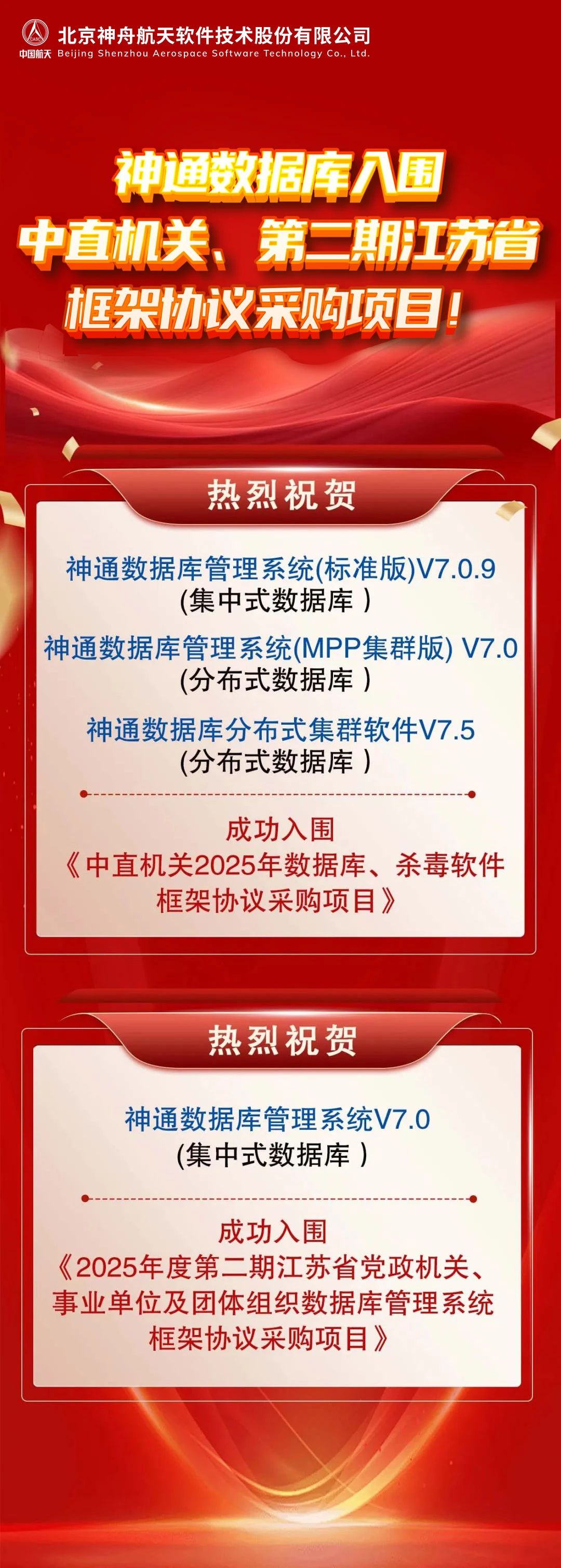 神通數(shù)據(jù)庫(kù)入圍中直機(jī)關(guān)、第二期江蘇省框架協(xié)議采購(gòu)項(xiàng)目!