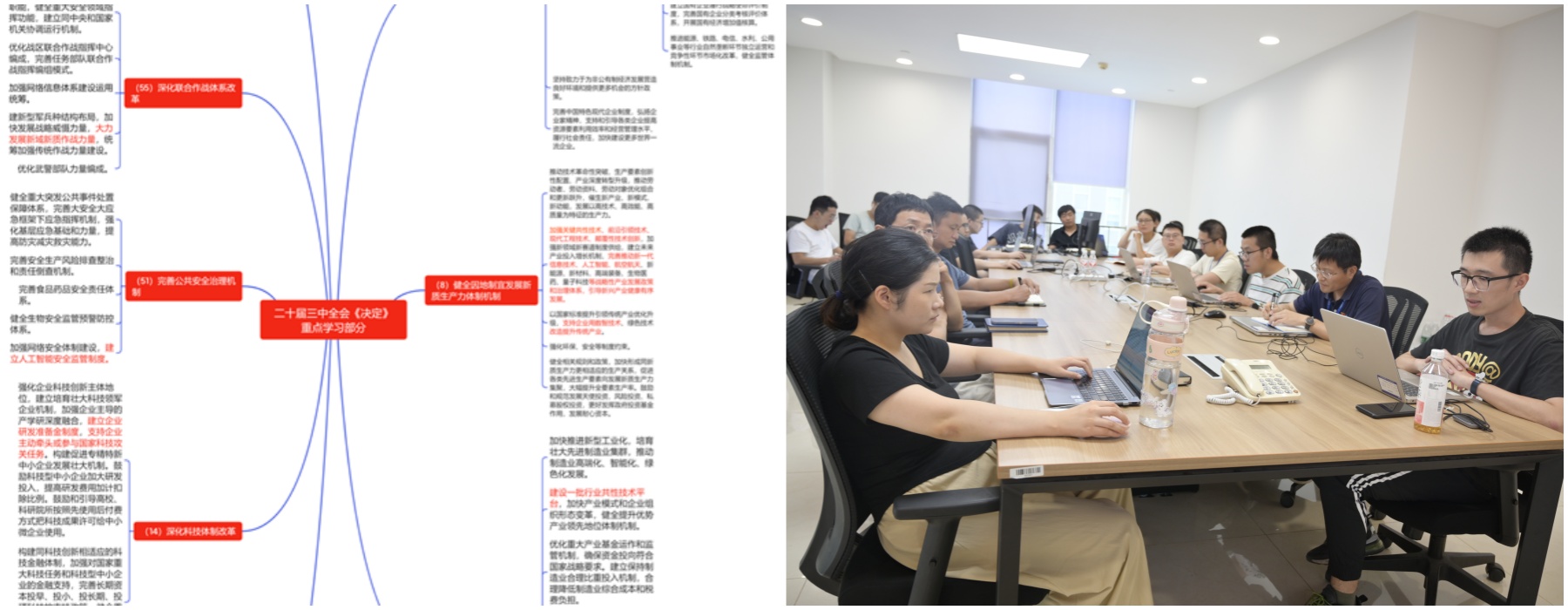 第六黨支部通過腦圖重點(diǎn)學(xué)習(xí)了《中共中央關(guān)于進(jìn)一步全面深化改革、推進(jìn)中國(guó)式現(xiàn)代化的決定》。支部同志們篩選與業(yè)務(wù)工作緊密相關(guān)的8個(gè)章節(jié),結(jié)合學(xué)習(xí)腦圖重點(diǎn)學(xué)習(xí)了《決定》,深刻領(lǐng)會(huì)了《決定》是當(dāng)?shù)臍v史上又一次綱領(lǐng)性文件,具有劃時(shí)代的意義。黨員同志們還學(xué)習(xí)了國(guó)有企業(yè)在落實(shí)《決定》過程中應(yīng)遵循的重大原則。通過此番學(xué)習(xí),全體黨員對(duì)《決定》的內(nèi)容精髓及其深遠(yuǎn)意義有了更為透徹的理解與把握。